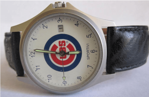 Crazy good find- an immaculate Vintage Chicago Cubs MLB Japan Watch for sale through Montosito-Mall on ebay. Love the black leather band, and that face! Oh, the face; simplicity, chic, modern, cool.