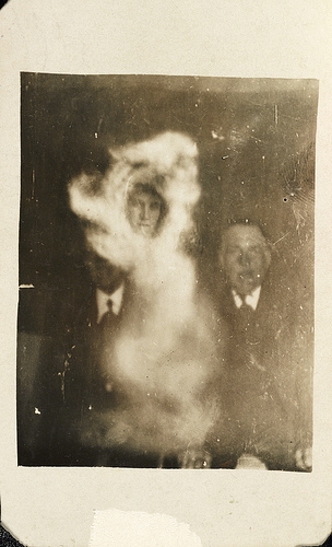 Ah, yes, I do love a good ghost story! And say, is that the shade of a shade I see? The second BW photo has a *dead*-ringer for a couple of lampshades my mom owned in the 60s. Cool!