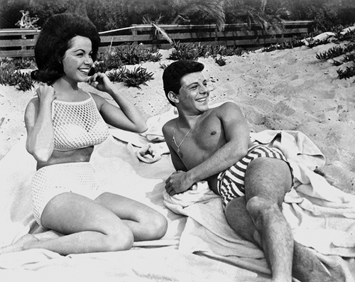 Frankie ascended the throne of Teen Supreme starring in “Beach Party”with Beachgirl Extraordinarie Annette Funicello, the first of five official “Beach Party” films that would spin “Beach Party” mythology into the public realm, and without a doubt kick fashion’s ass.