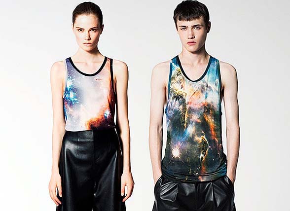Christopher Kane is one designer who is known for his stelar universal prints. Be it on a cardigan or tank top, this trend translates to youthful planetary revolt! Kane lends his watchful eye to both menswear and womenswear. Done in a very tasteful way, you can now take an entire galaxy out for a night on the town!