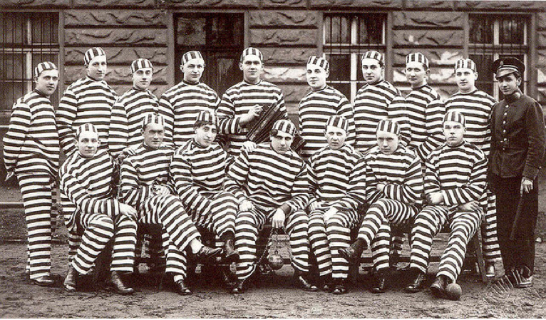I’ve always had a penchant for stripes. The prisoners even manage to look weirdly cute and charming, but then that’s perhaps a bit more about how our perception of and relationship to ‘criminal outcasts’ has changed over the years than commentary on the actual characters in the photo. Meanwhile, the fellow in the plaid shirt and jacket seems to me to be rocking an excellently 80s ‘Beetlejuice’ vibe!