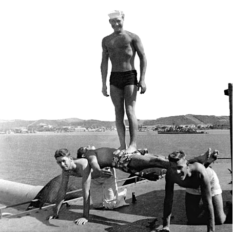 Soldiers Having Some Extreme On-Deck Pre-‘Planking’ Planking {Circa. 1940s – Courtesy of The Eye of Faith}.