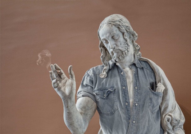 French art director Alexis Persani has collaborated with french photographer Leo Caillard to create these photo-shopped marvels. The Christ with a denim button down smoking a cigarette, the writer Montaigne tries on ‘hipster’ style. Fashion invades the sculptures in the Louvre, indeed!