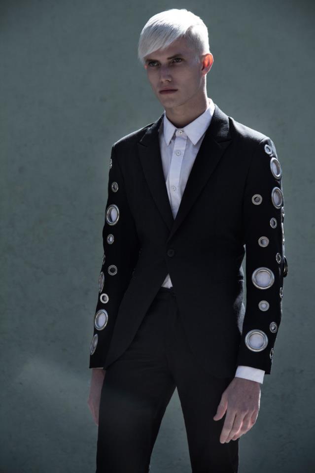 teen witch black blonde model tux suit detail