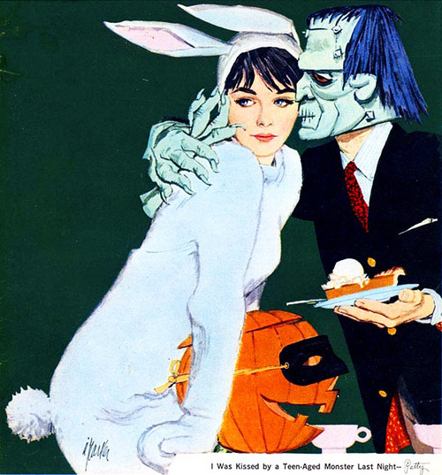 THere is just sooo much that can be “read” into this image even the position of the open-mouthed Jack-O-Lantern, the pie a la mode in his hand. This is just like….. my, my, my, I can’t continue. π