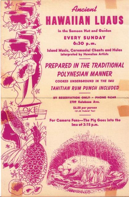 The Queen’s Surf was a one-of-a-kind experience that is still remembered today for its Hollywood calibre entertainment (with Sterling Mossman doing much of the entertaining himself), and their fantastic full course traditional Luaus; held on the beach, they would definitely give tourists something to remember their trip by. A true taste and feel for life on the islands…