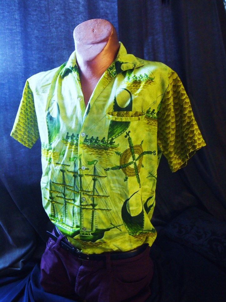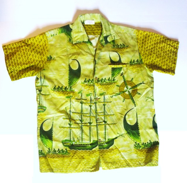 The shirt features a menagerie of motifs dedicated to the concept of voyage and discovery; no doubt an ode to the many voyagers who made their way to the islands of Hawaii, turning it into the bright and culturally diverse haven it is today.