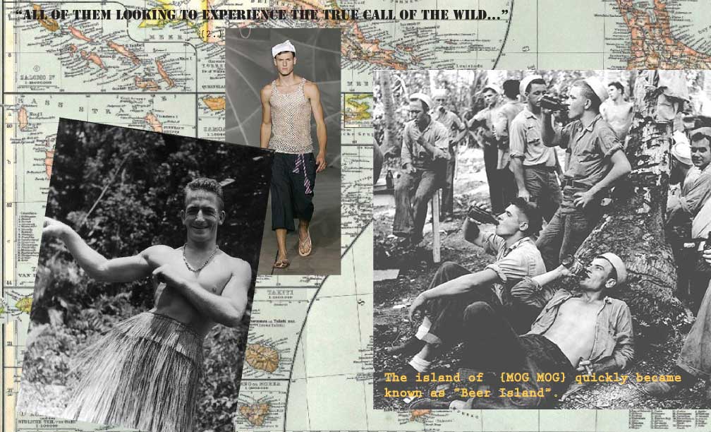 Taking us to a world both wild and exotic, this series was inspired by the faded 1940s dreams and memories of life on the high seas in the South Pacific. It is the tale of society’s soldiers taken hostage by the wild. In many ways, it is a true Paradise Lost lived . . .