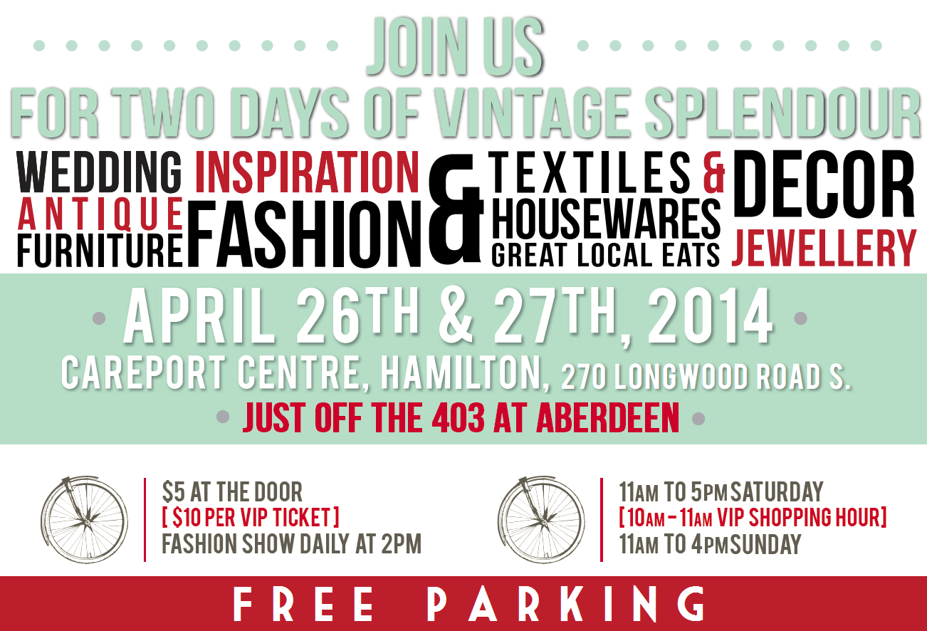 We are thrilled to join the ranks of vintage vendors making their way to the Careport Centre located at 270 Longwood Rd S. in Hamilton, Ontario.