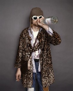 kurt cobain in leopard coat- ecclectic king – rock n roll- vintage style inspiraton