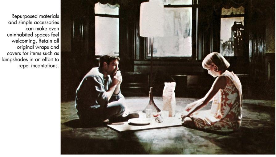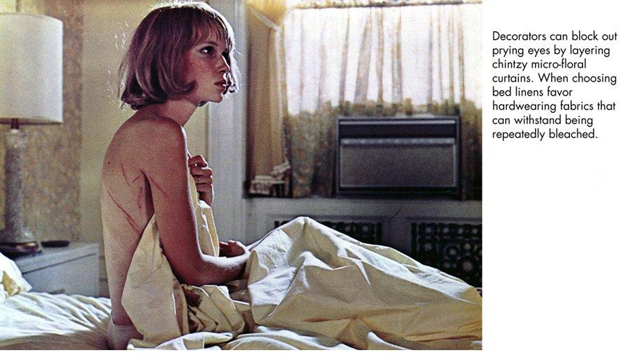“All the while Rosemary is remaking the apartment to suit her needs, the building (and its inhabitants) are remaking her to suit theirs, which makes her choices of bright white walls and sunny yellow fabrics seem at first hopeful, then increasingly creepy.”