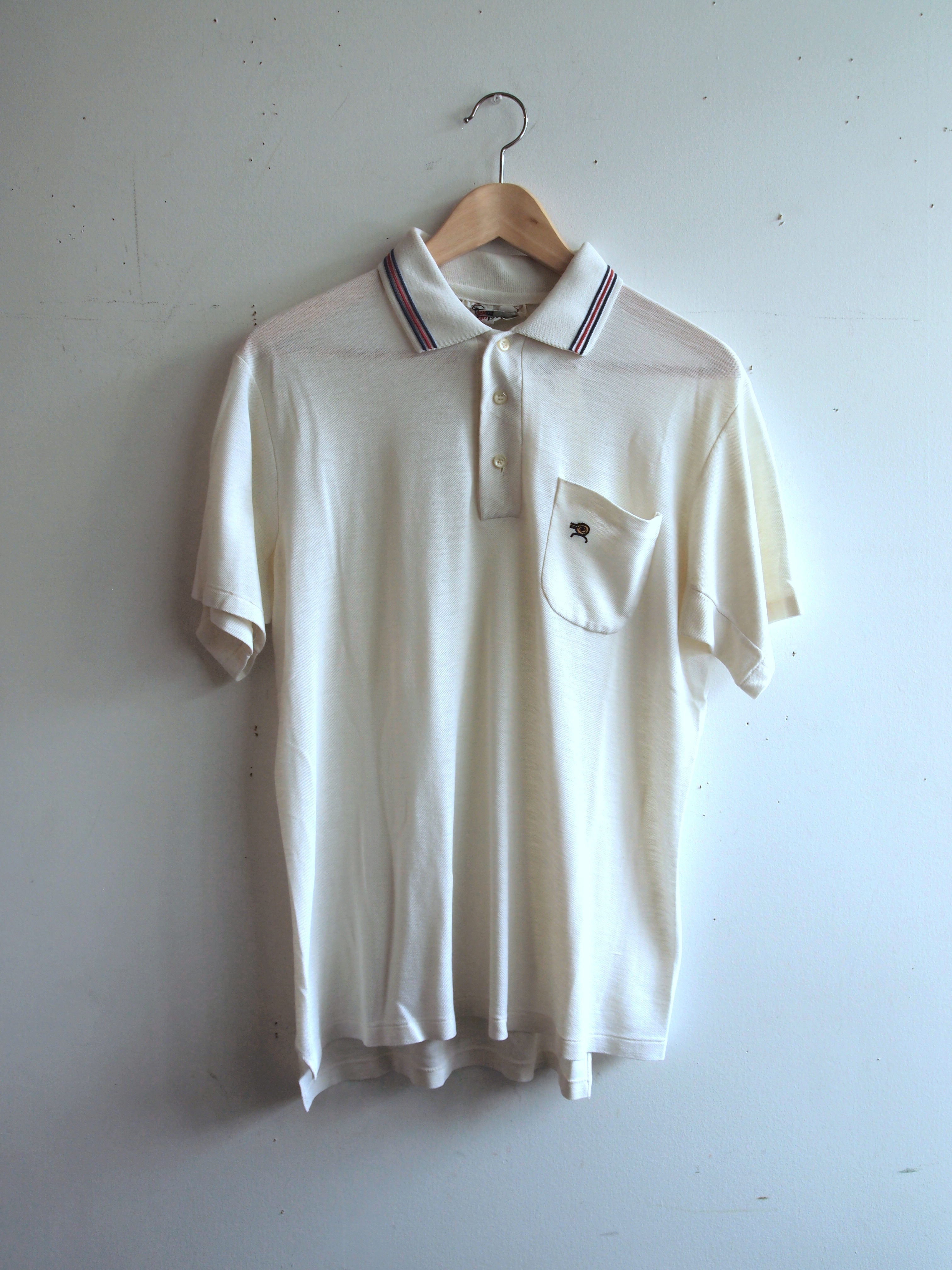 Vintage 1970s Mens Bjorn Borg Inspired Classic White Tennis Shirt with Red and Blue Stripe Collar- The Eye of Faith Vintage