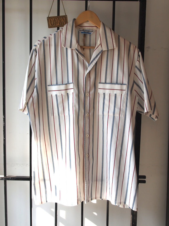 1960s Vintage Mens Striped Bad Ass Beach Boys Surf Shirt- Dennis Wilson Inspiration- The Eye of Faith Vintage