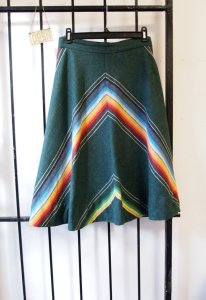Sweet 1960s Vintage Classic Southwest Boho California Surf Chic Handmade Striped Hunter Green Mexican Blanket Graphic Skirt
