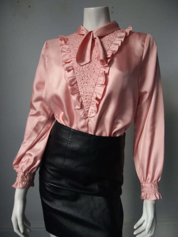 Pink Ruffled Pussy Bow Blouse