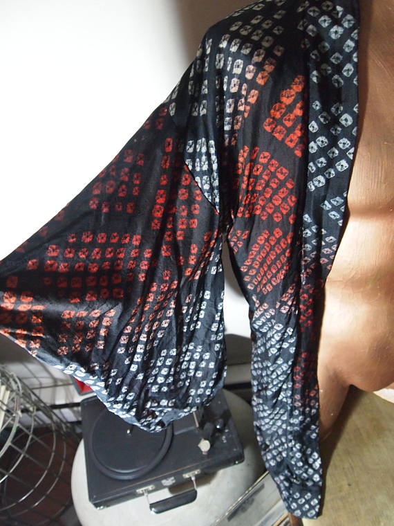 The Eye of Faith {Vintage} Blog Shop – Mens Vintage 1940s Japanese Black Red and White Handblocked Graphic Print Slouchy Party Kimono Robe-2