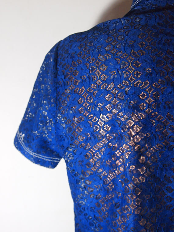 The Eye of Faith {Vintage} Blog Shop – Mens Vintage 1970s Luxe Playboy Navy Blue Lace Short Sleeve Sophisticated Chic Dapper Dandy Party Shirt-2