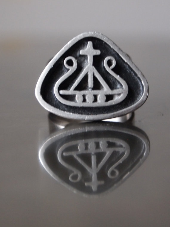 The Eye of Faith {Vintage} Blog Shop – Mens Vintage Mysterious Silver Pewter Cross and Ship Secret Society Ring