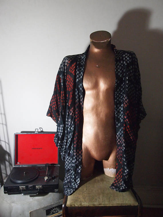 The Eye of Faith Vintage Blog Shop- Bad and Boujee- 1940S Mens Japanese Graphic Hand Blocked Cotton Silk Kimono