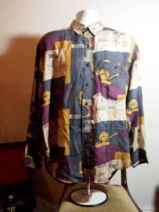 The Eye of Faith Vintage Blog Shop- Bad and Boujee- Lavish 1980s Mens Slouchy Playboy All Over Graphic Silk Shirt