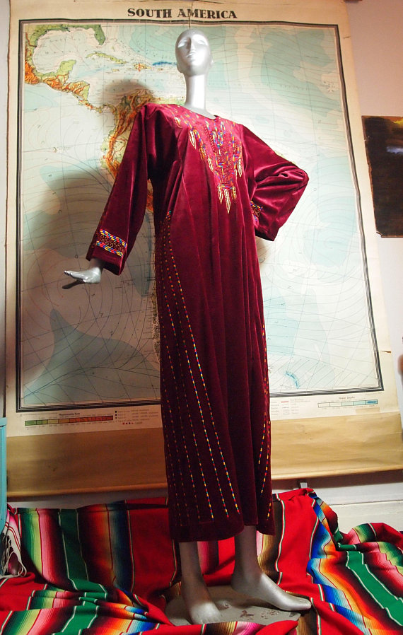 The Eye of Faith Vintage Blog Shop- Style Inspiration- Romeo and Juliet-Romeo Mens Fashion Clothing- 1960s Embroidered Embellished Red Velour Caftan Robe