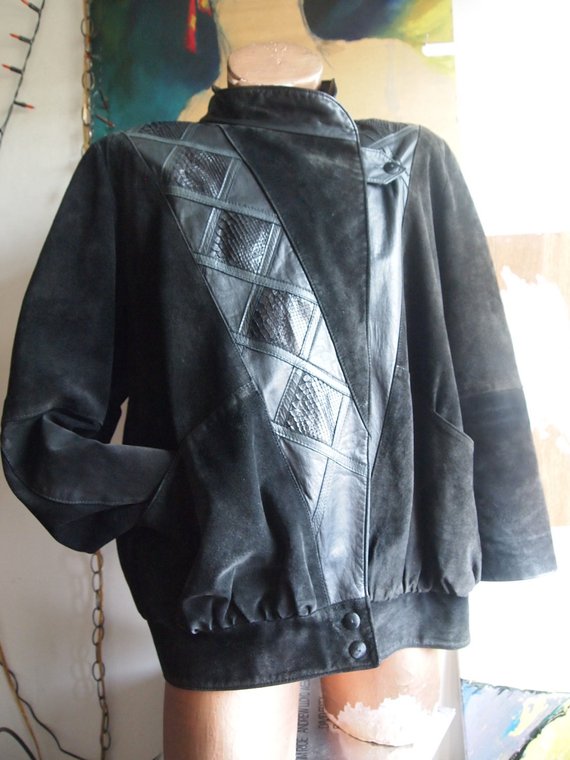 The Eye of Faith Vintage Blog Shop- Style Inspiration- Romeo and Juliet-Romeo Mens Fashion Clothing- Unusual Black Suede Snakeskin Leather Structured Bomber