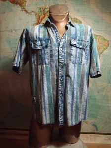 The Eye of Faith Vintae Blog Shop- Mens 1980s BOSSINI acid wash graphic stripe leisure shirt