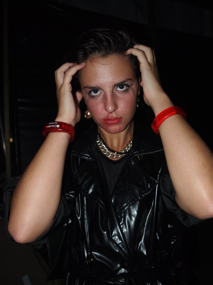 Fatefully we would also have the pleasure of running into the stylish foursome – “The Beaches” whose lead singer walked away with that smashing shiny black PVC trench coat (made in Switzerland if my memory serves me correct) and wore it for their kick ass performance, which I was privy to watch, as well as sneak some behind the scenes takes.