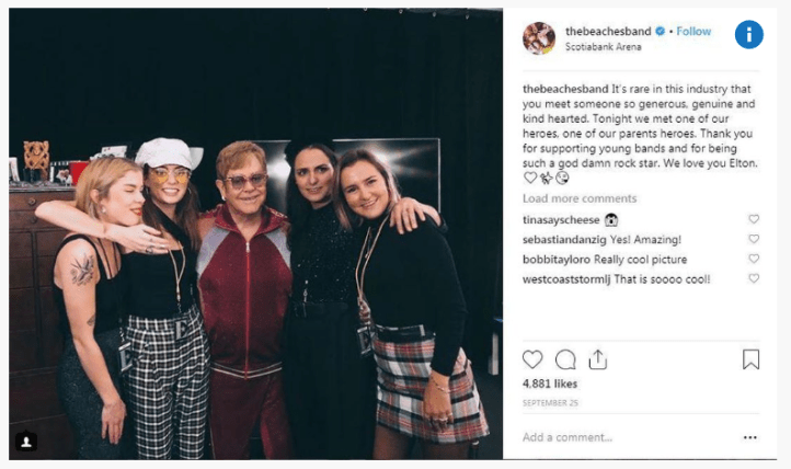 So lets give it up for Jordan, Eliza, Kylie, and Leandra for all their wicked success since! As well as winning Best Breakthrough Group at the 2018 Juno Awards, the group has also been centred out by an extremely prominent rock n roll rebel icon … Sir Elton John!